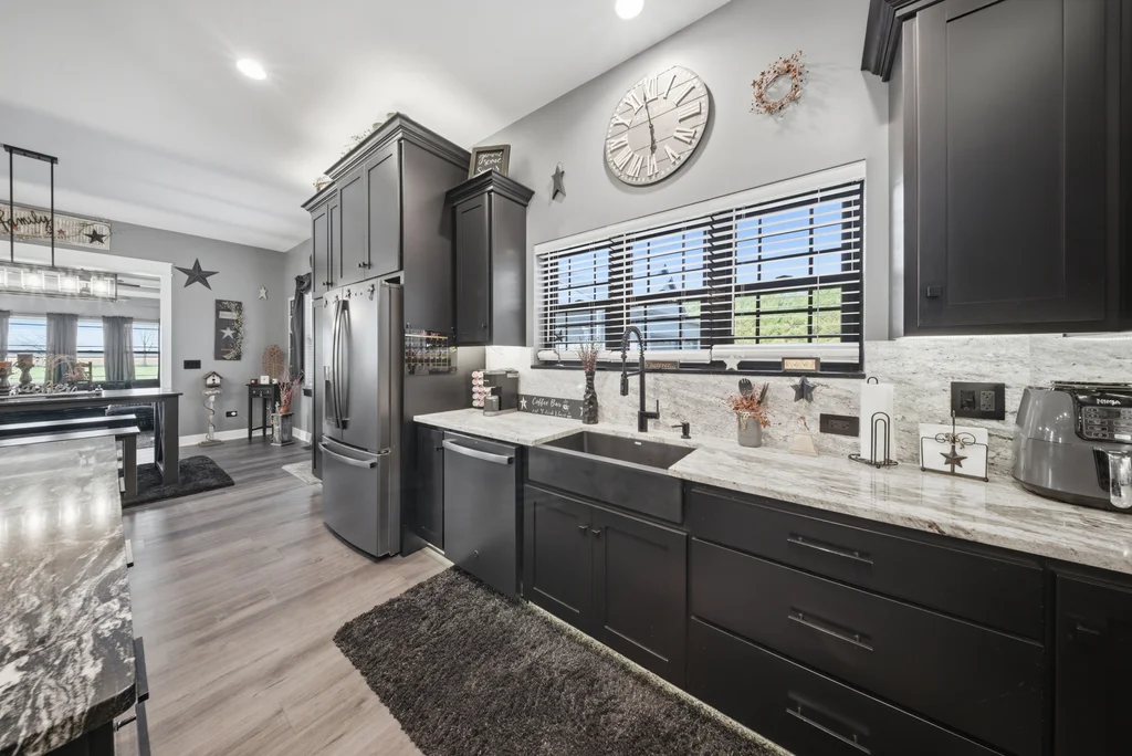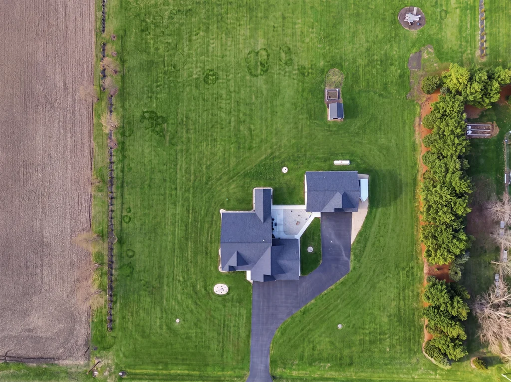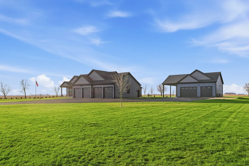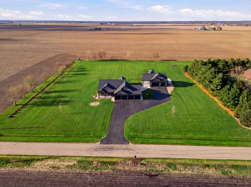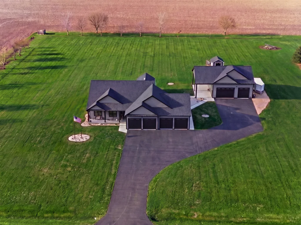 Welcome to 2401 N 4350th Rd in Sheridan. An exceptional blend of refined design, modern efficiency, and expansive country living. This 2024 custom-built residence offers over 2,800 square feet on the main level, featuring a thoughtfully designed 3-bedroom, 3-bathroom layout that balances everyday comfort with elevated finishes throughout, while sitting beautifully on 5 acres. Designed with 10-foot ceilings and 8-foot doors throughout, the home delivers a grand, open feel that enhances both space and natural light from the moment you enter. Step inside to an open-concept interior where natural light and clean architectural lines create a warm yet sophisticated atmosphere. The kitchen serves as a true focal point, showcasing granite countertops with a full granite backsplash and an oversized island spanning over 7 feet long and 5 feet wide, delivering both durability and a seamless, high-end aesthetic ideal for daily living and entertaining. In the kitchen, note the luxury 42-inch cabinets as well as a custom walk-in pantry with a sliding barn door, adding both character and highly functional storage. Continuing that same level of finish, the laundry room is equally well-appointed with granite countertops, a full granite backsplash, and matching cabinetry, elevating even the most functional spaces with a consistent, high-end design. A stunning 375 sq ft sunroom extends the living space, offering a light-filled retreat with views of the surrounding landscape, perfect for slow mornings or unwinding at the end of the day. The full basement, complete with a finished bathroom and partially finished living space, provides additional flexibility for recreation, guest accommodations, or future customization. For those who value space without compromise, the property features a fully finished and heated 4-car attached garage, along with a detached garage + loft (approx. 1,500 sq ft) that makes a statement of its own. With soaring ceilings reaching up to 20 feet, it offers incredible versatility for storage, hobbies, a private workshop, or elevated recreational space. Built with longevity and performance in mind, the home includes LP SmartSide siding with a 50-year Diamond Kote finish, spray foam insulation throughout the home and both garages, and a full-house generator, delivering efficiency, durability, and uninterrupted comfort with added peace of mind year-round. Every detail, from the custom pantry to the consistent stone finishes, was designed with both beauty and function in mind. Set within Adams Township and located in the Somonauk School District, this property is zoned Agricultural (a horse lover’s dream), allowing for a wide range of uses and making it ideal for those seeking both lifestyle and land. This is more than a home. It’s the space, freedom, and quality you’ve been searching for.